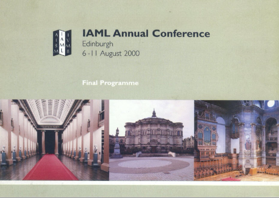 The 2000 IAML Conference took place in Edinburgh, Scotland, 6-11 August.