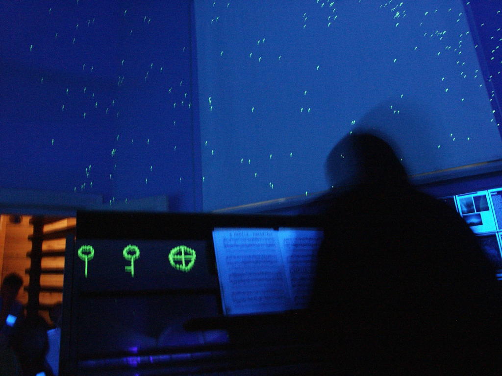 The Wednesday afternoon tour started with a visit to the ‘observatory’ at Urmas Sisask’s home where, with lights dimmed, he spoke, before playing for us on an upright piano decorated with luminous astrological symbols and we were able to observe the luminous heavens that he had painted on the ceiling.