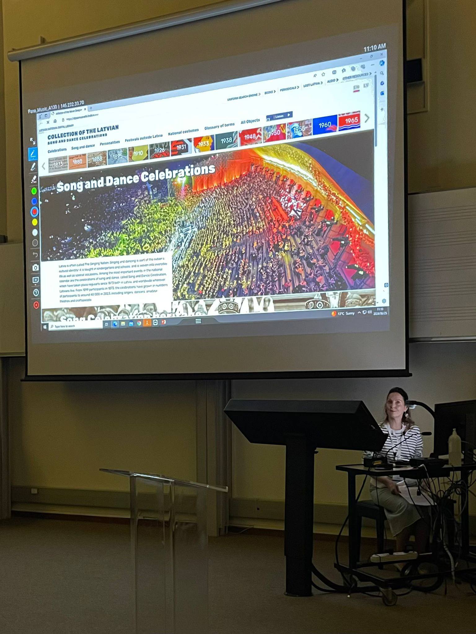 Vakar bija piepildīta un interesanta diena. Man par lielu iepriecinājumu satiku vairākus cilvēkus, kuri pienāca klāt un pateicās par manu referāta lasījumu dienu iepriekš. Kolēģe (jā, mēs visi šeit esam kolēģi) no Dienvidāfrikas KwaZulu Uniersitātes izteica komplimentu par tik veiksmīgu saskarni, kāda ir Dziesmu svētku krātuvei – viss esot tik lieliski navigējams un saprotams. Komplimentus par mūsu radīto krātuvi esam dzirdējuši arī iepriekš, bet dzirdēt no ārzemniekiem tas ir divtik liels prieks. Kāds cits kolēģis, savukārt, es atceros Tevi, no Latvijas! Kā Tev iet? Kā Tavā ģimenē uztver šo kara situāciju, vai dzīvojiet bailēs?
