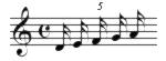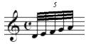 | 8({‘3DEFGA};5) | Quintuplet, 5 32nd notes, in the space of an eighth note, with beamed notes | ![]() |