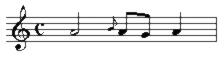 | g | acciaccatura (without rhythmic value, precedes the note name) | ![]() |